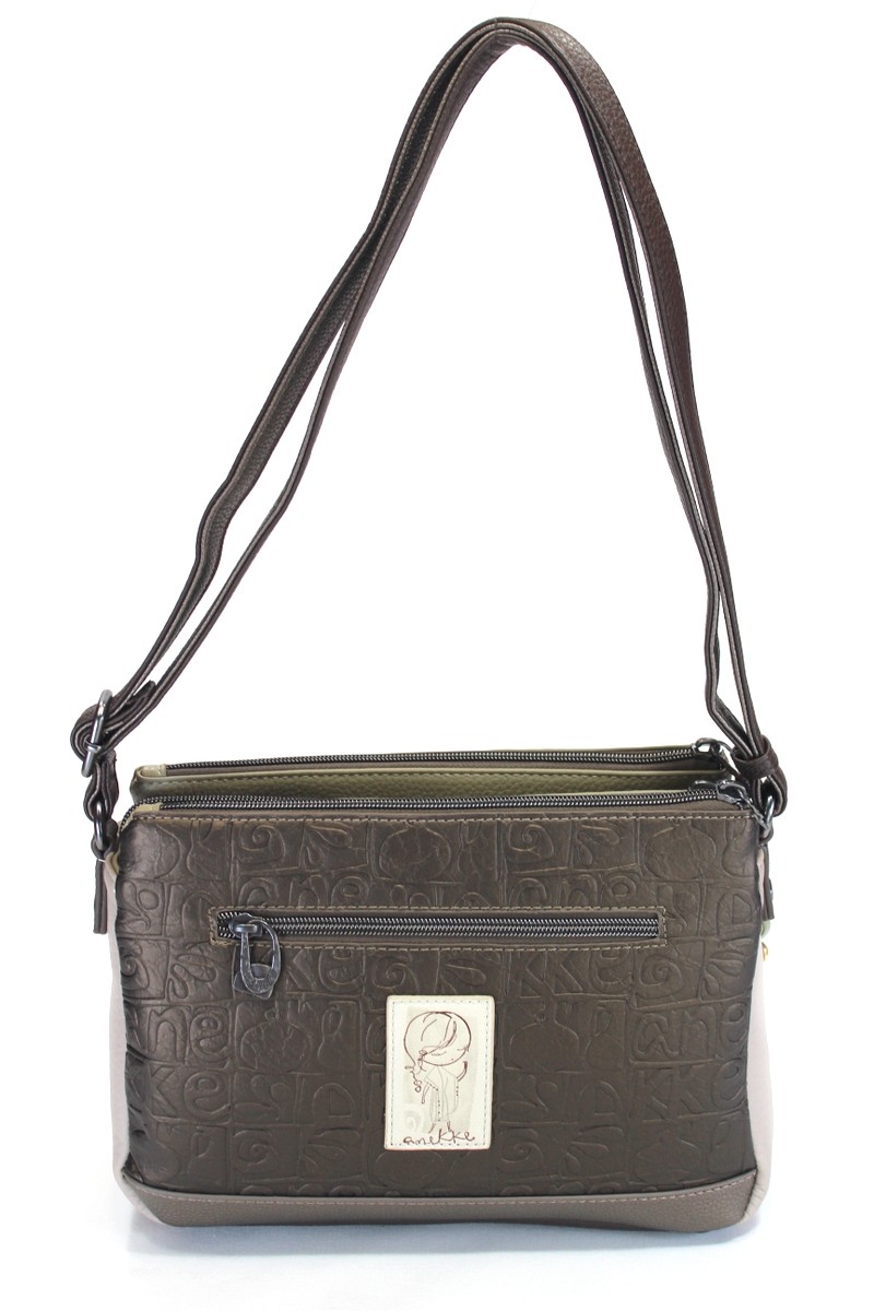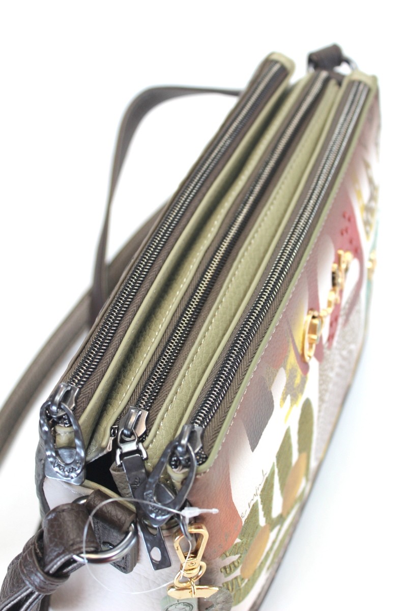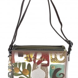 Bandolera mediana de tres compartimentos. Reversible.