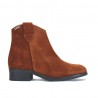 Zapato salón de ante troquelado, con adorno chapa en empeine