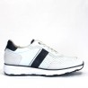 Zapato salón de ante troquelado, con adorno chapa en empeine