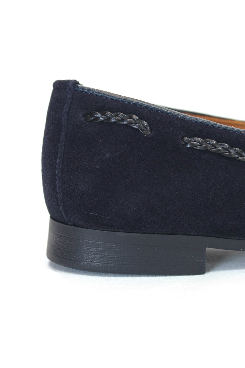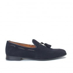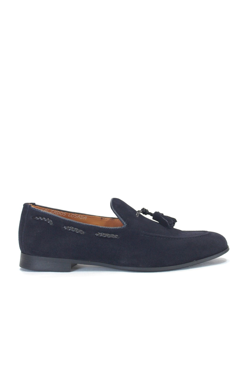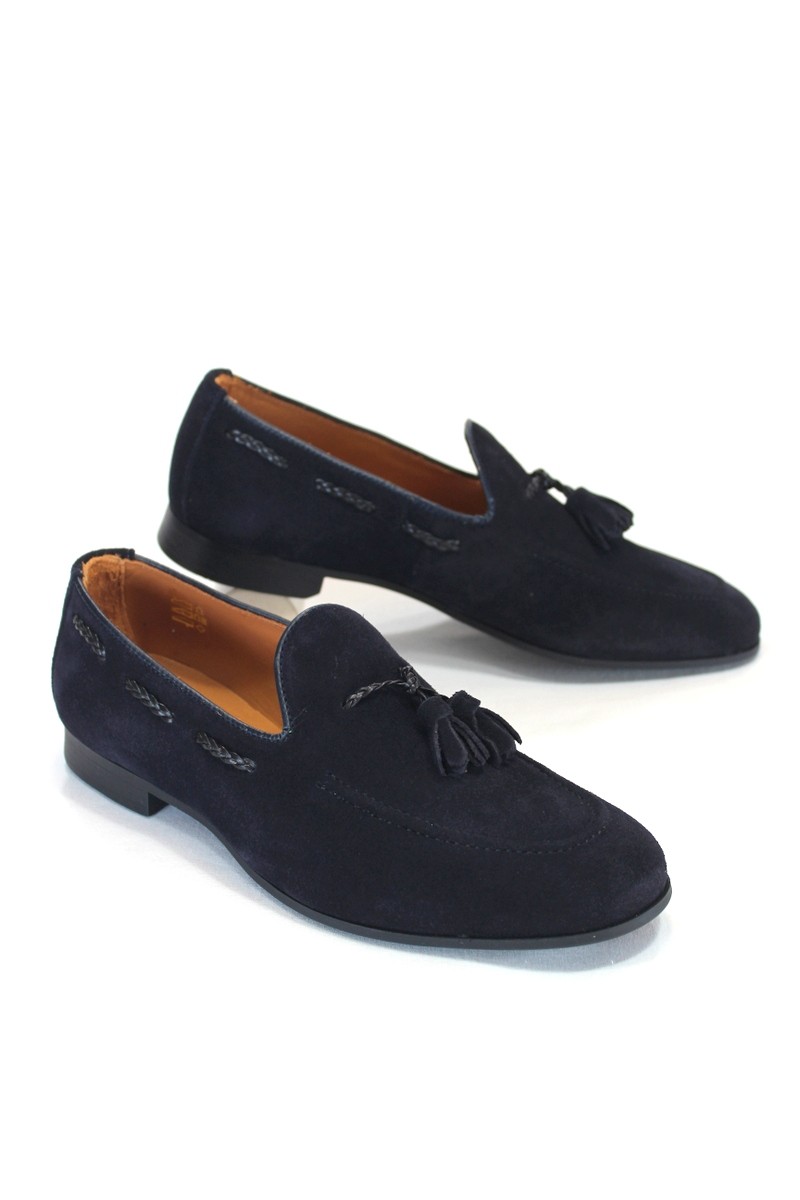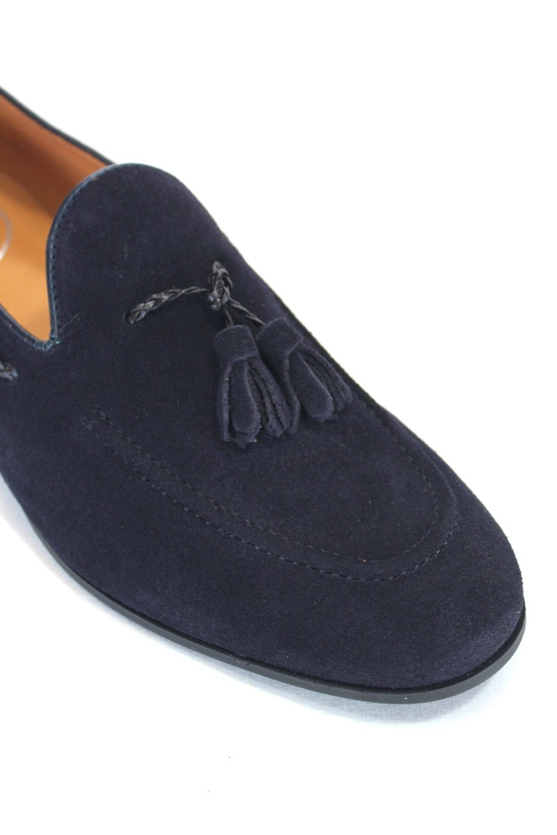 Zapato mocasín de vestir con adorno borlas en empeine.