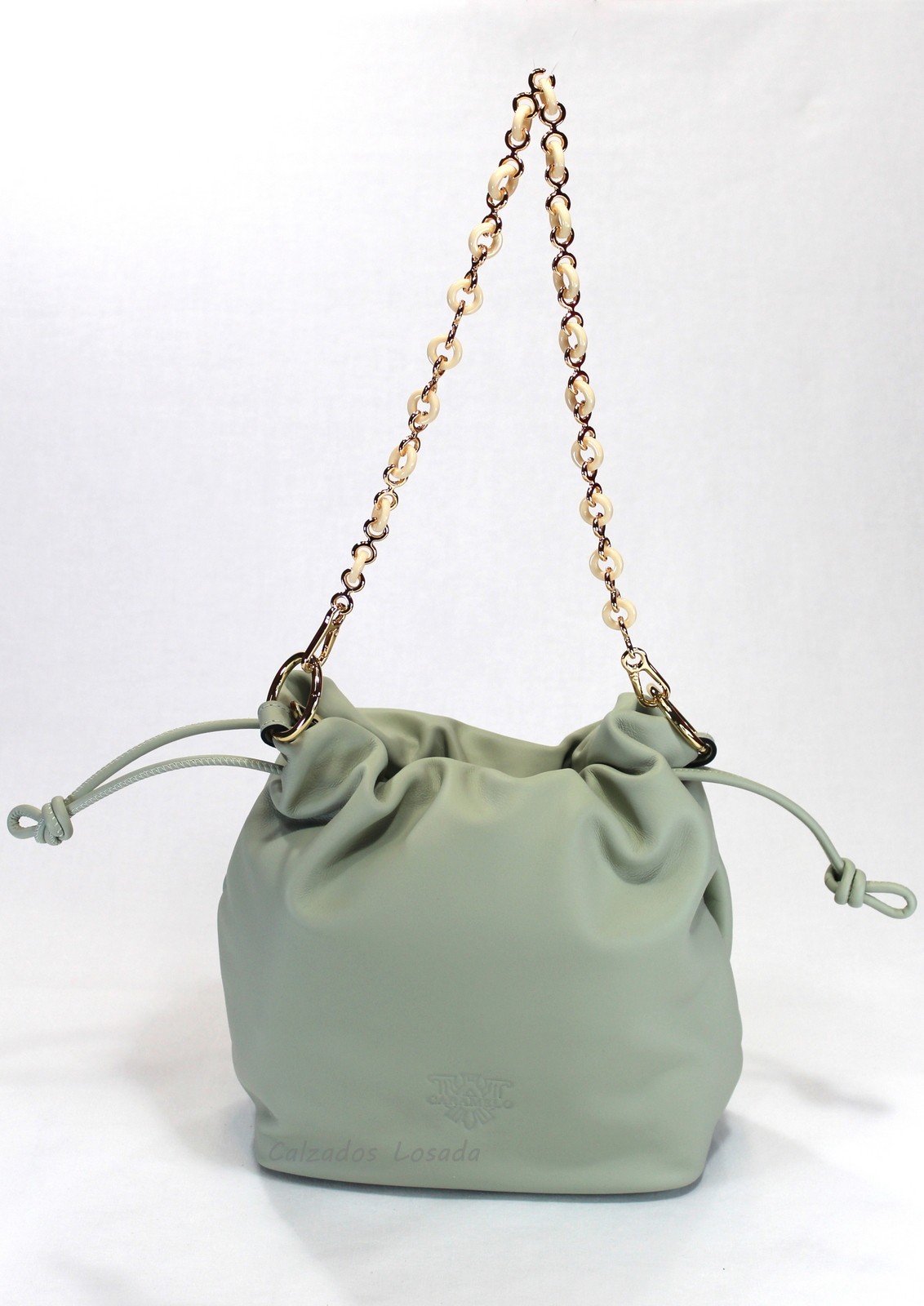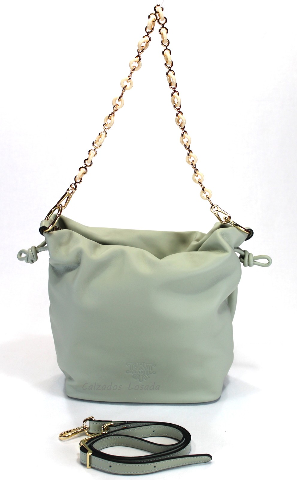Bolso cadena de hombro y bandolera de piel adicional.