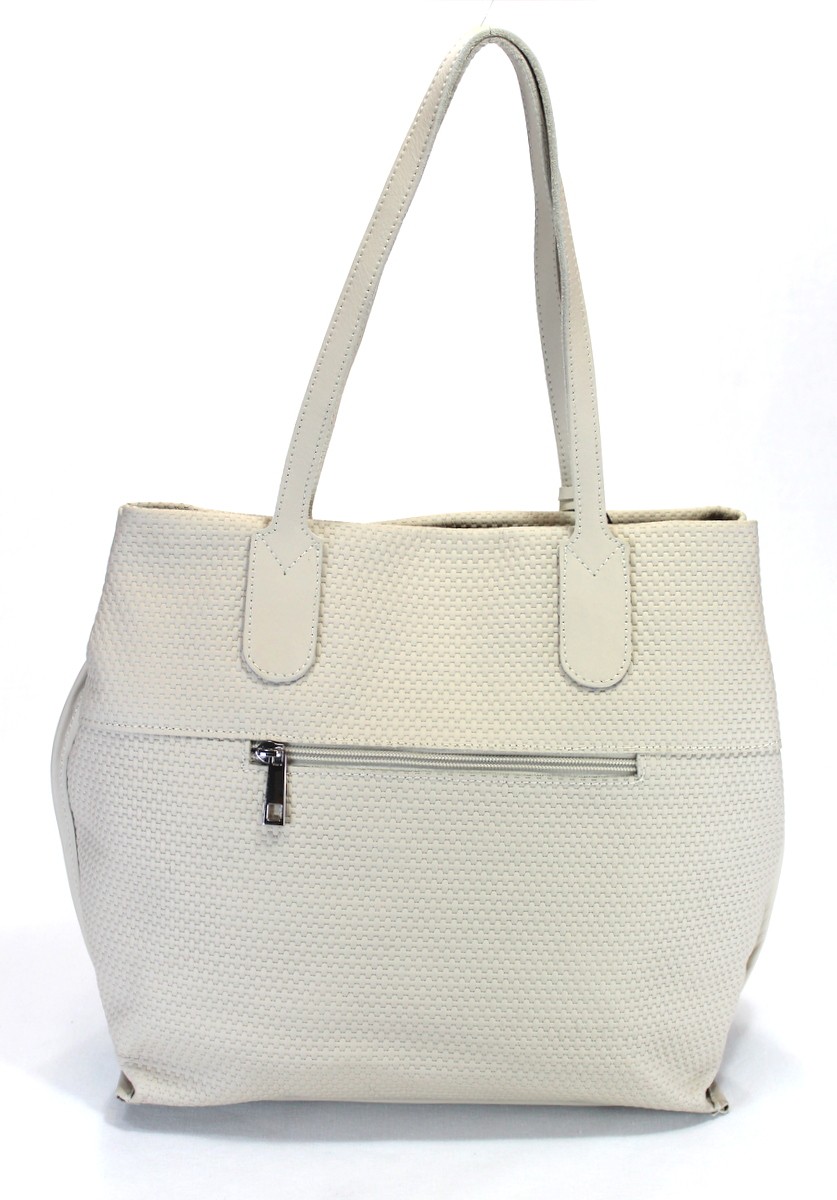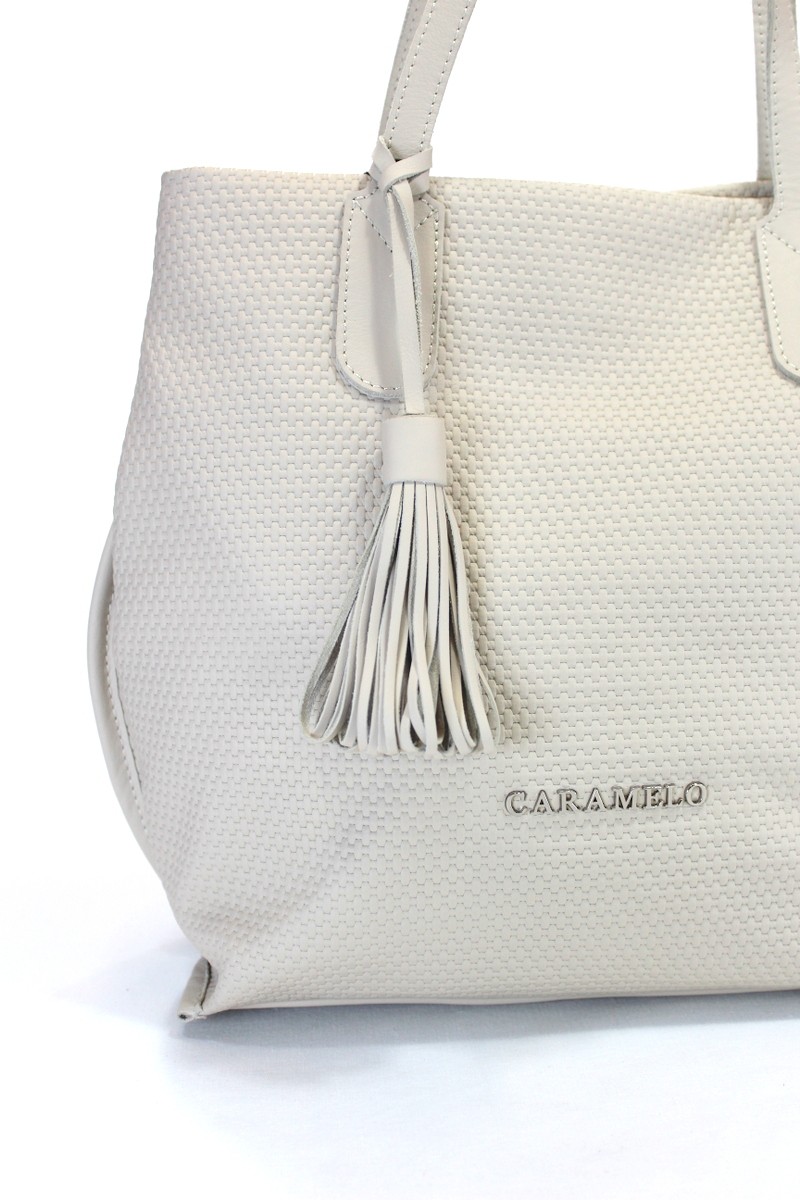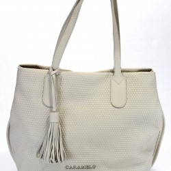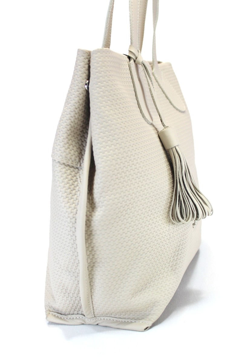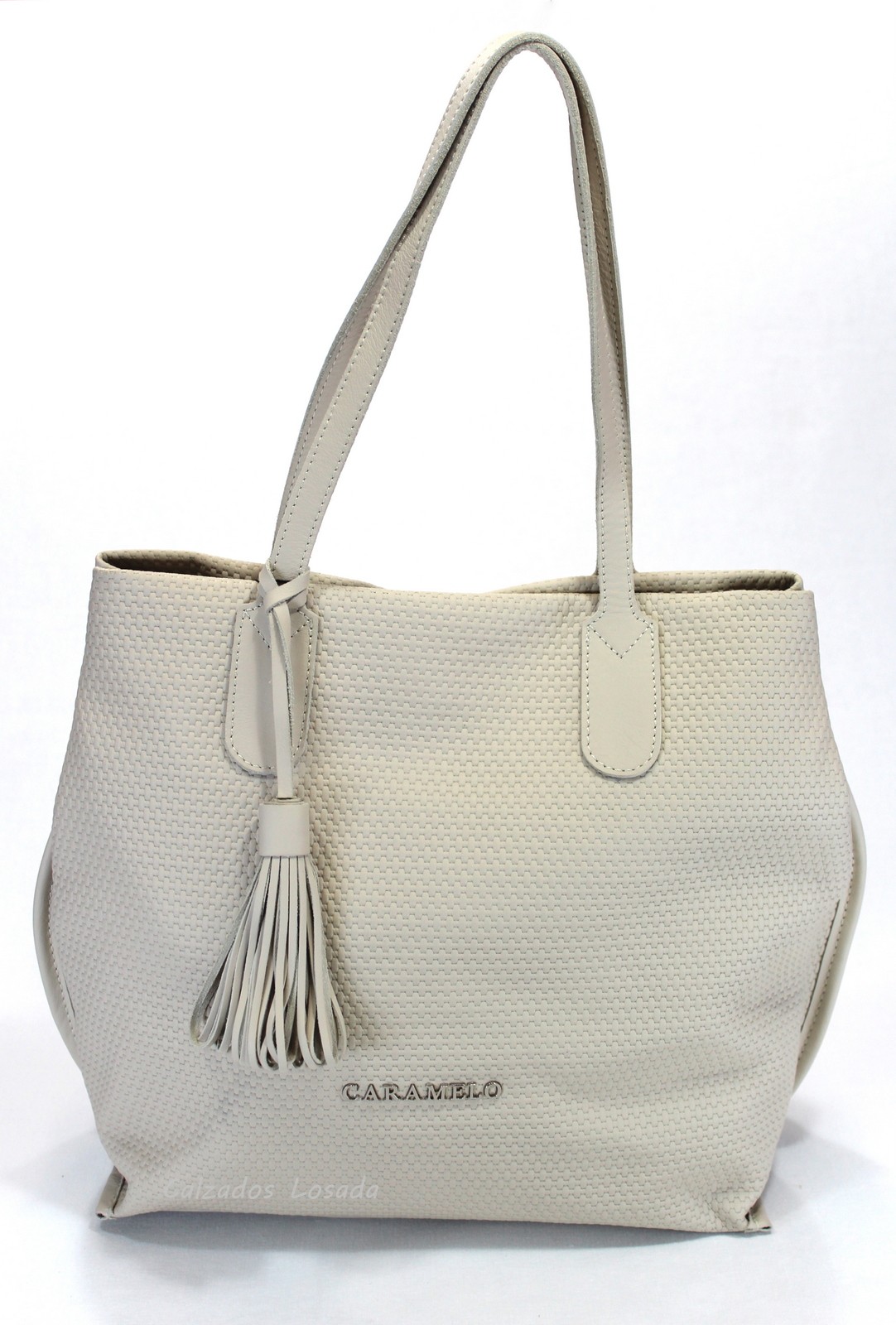 Materiales: Exterior y asas de piel, e interior forrado de textil.