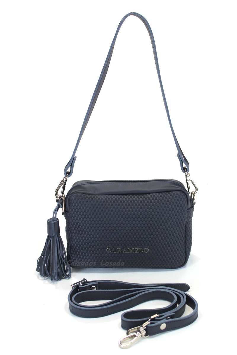 Bolso bandolera con asa de hombro adicional, con adorno borla.