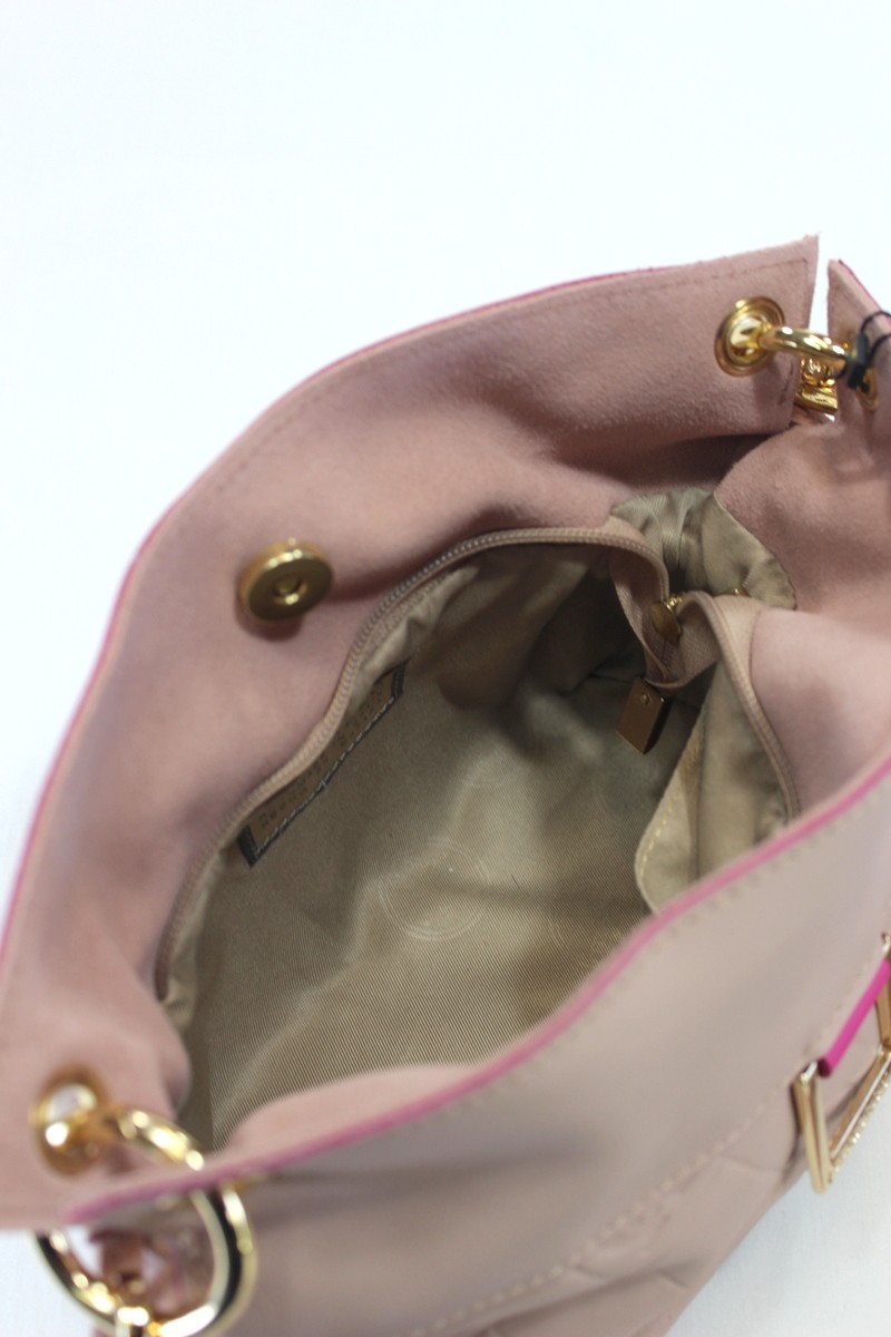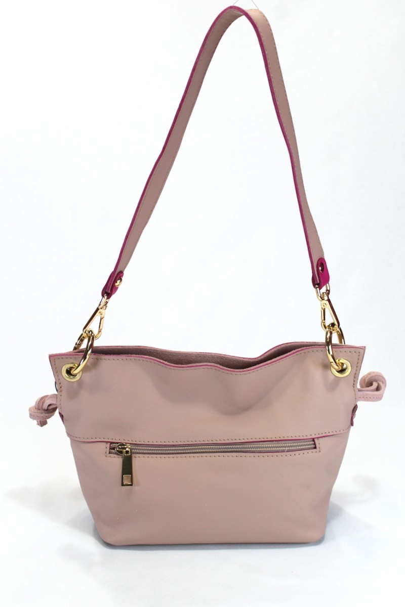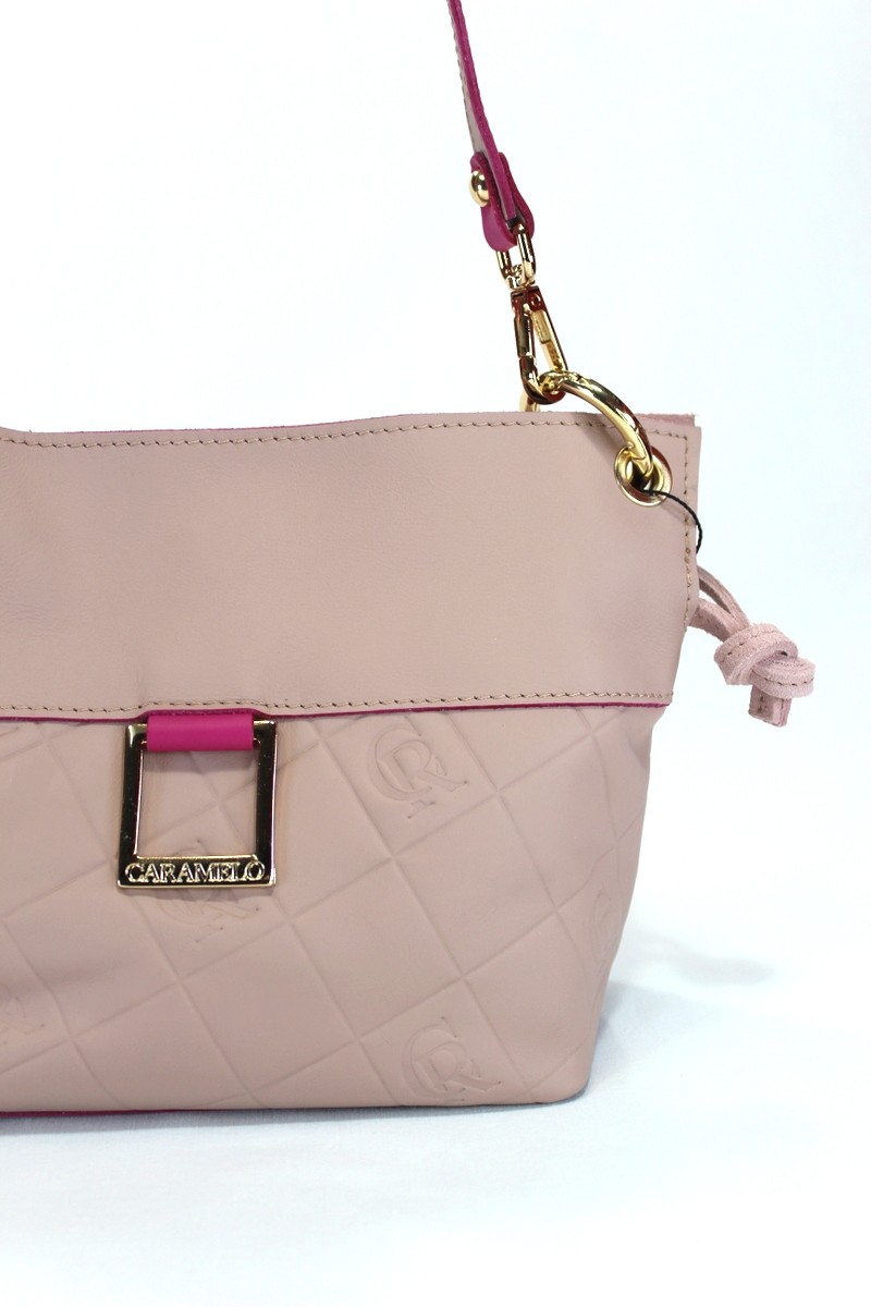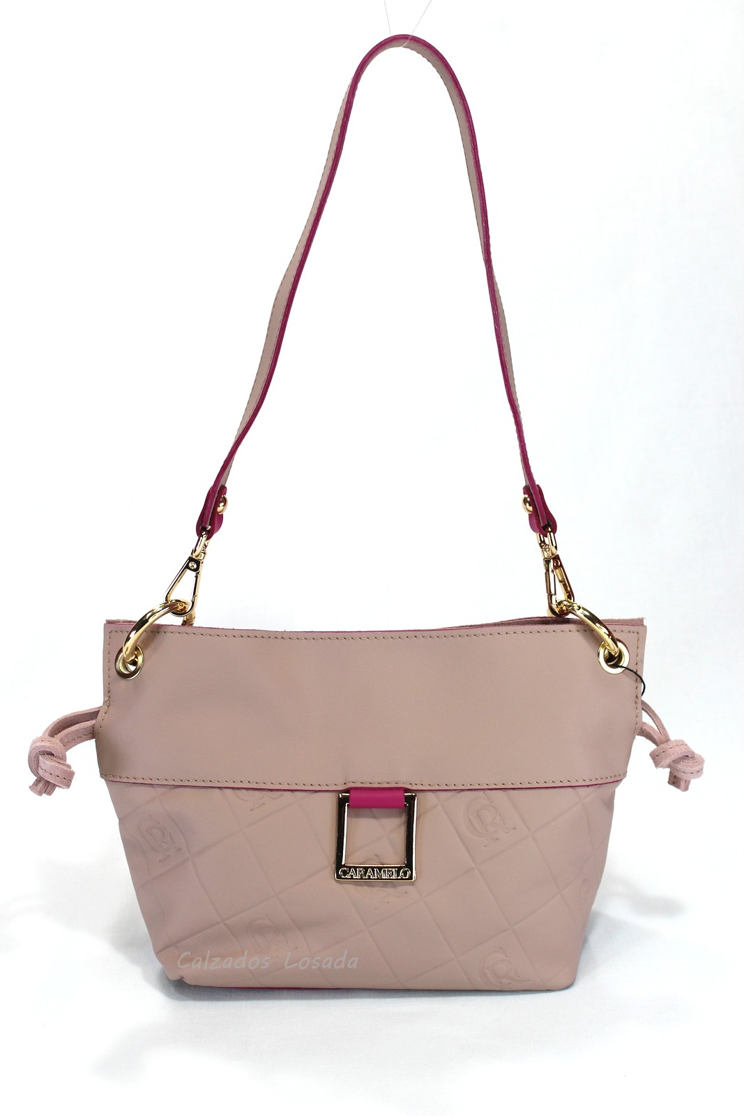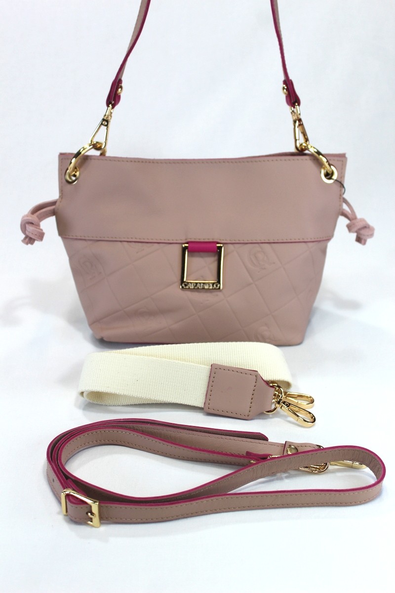 Bandolera pequeña con un asa de hombro de piel y otra de algodón, además