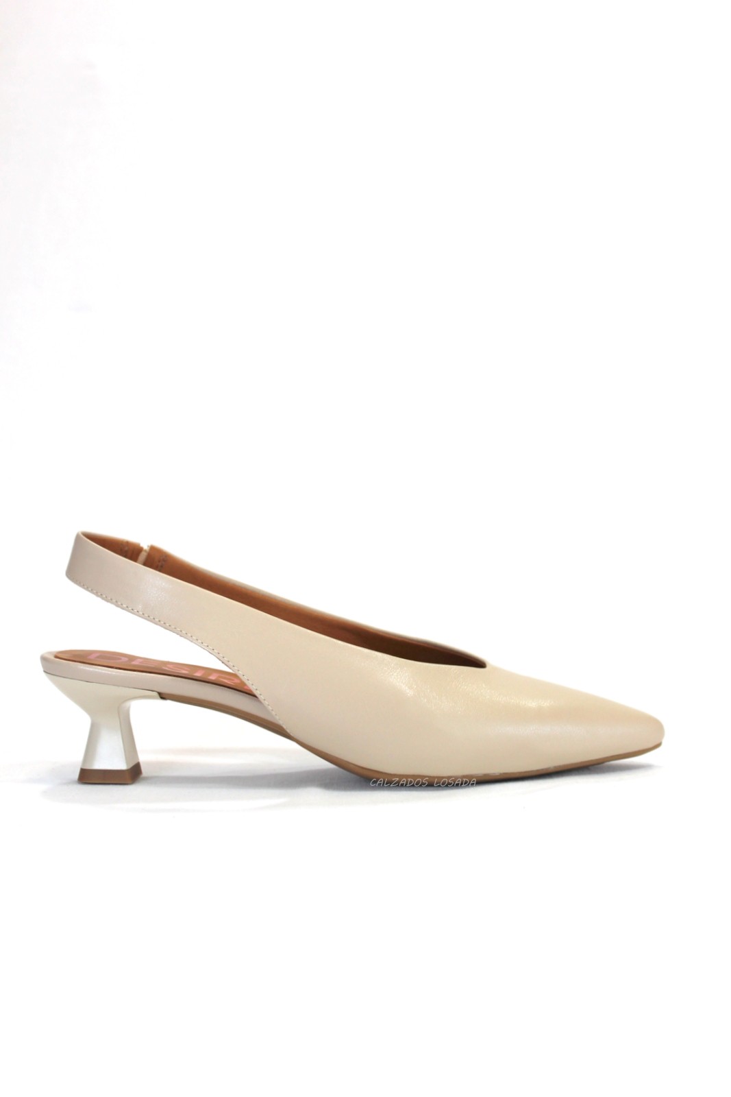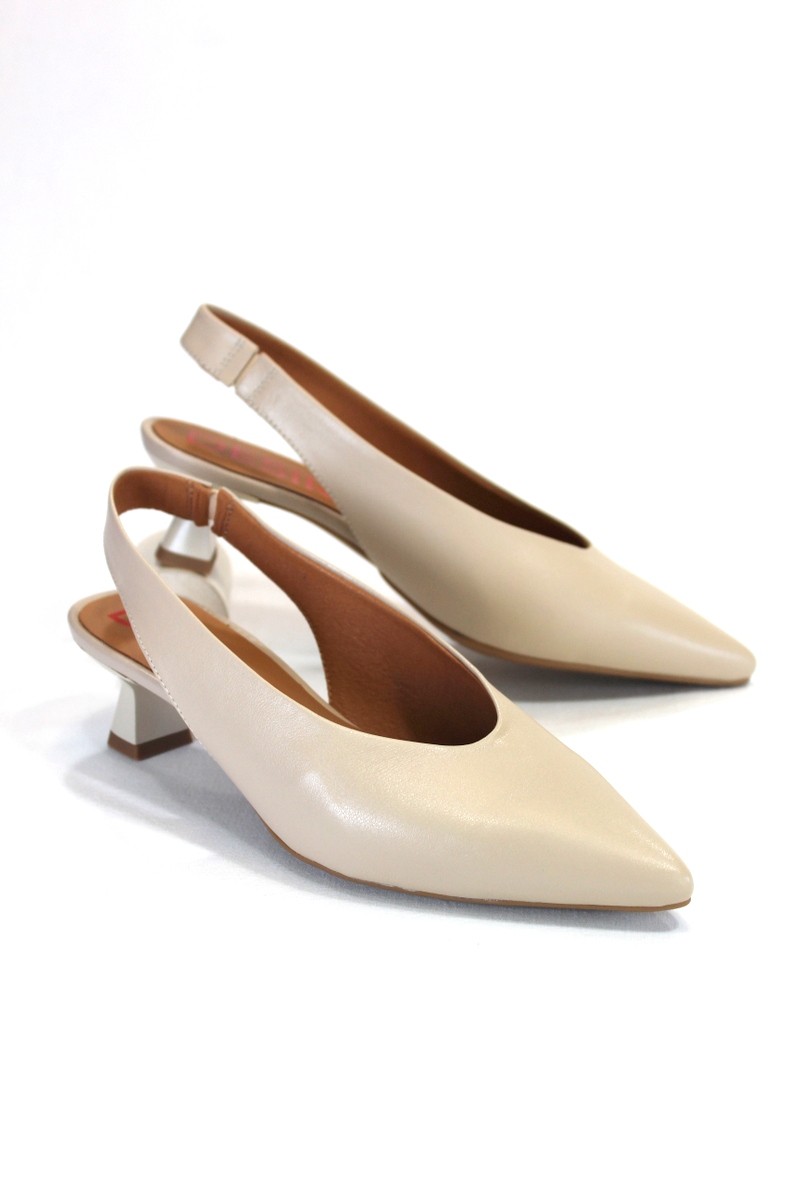 Zapato salón destalonado de tacón bajo.
