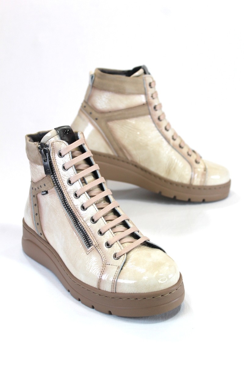 Cierre con cordones y cremallera lateral para mayor comodidad.