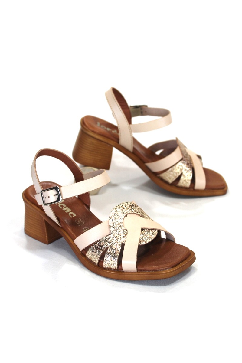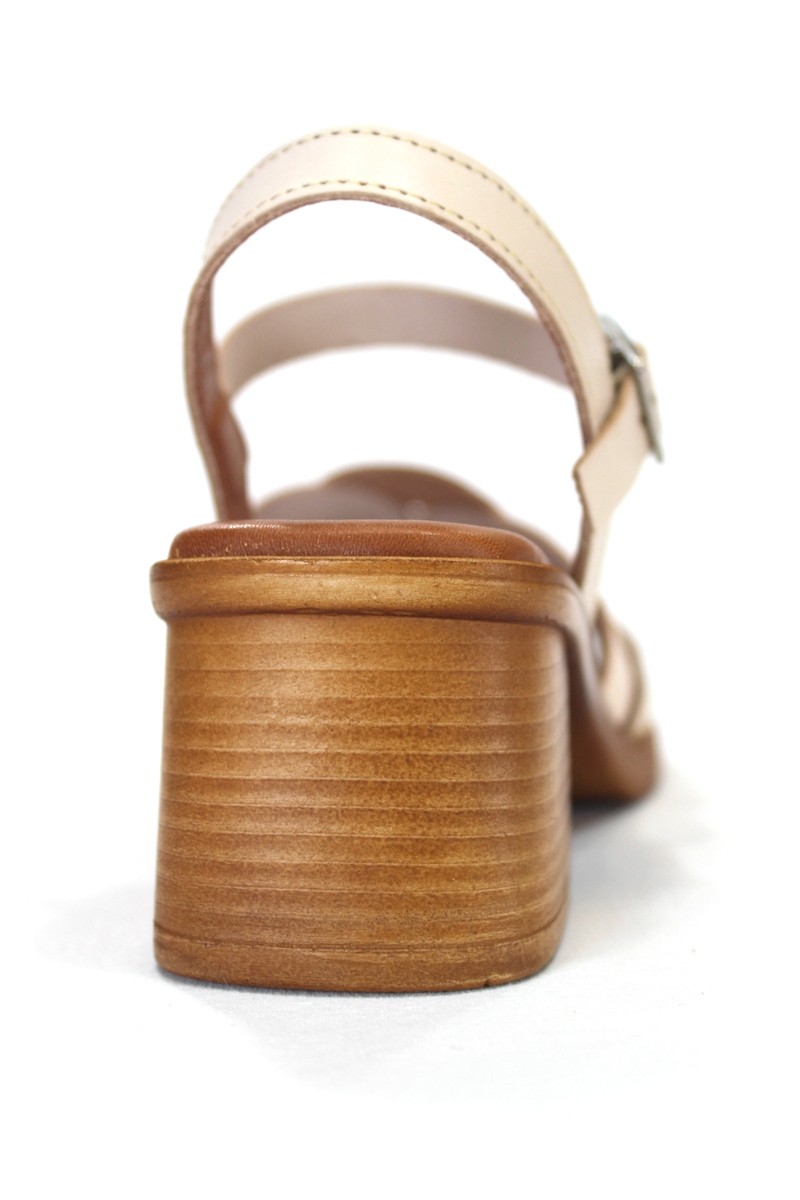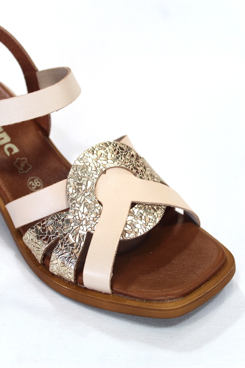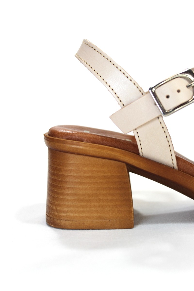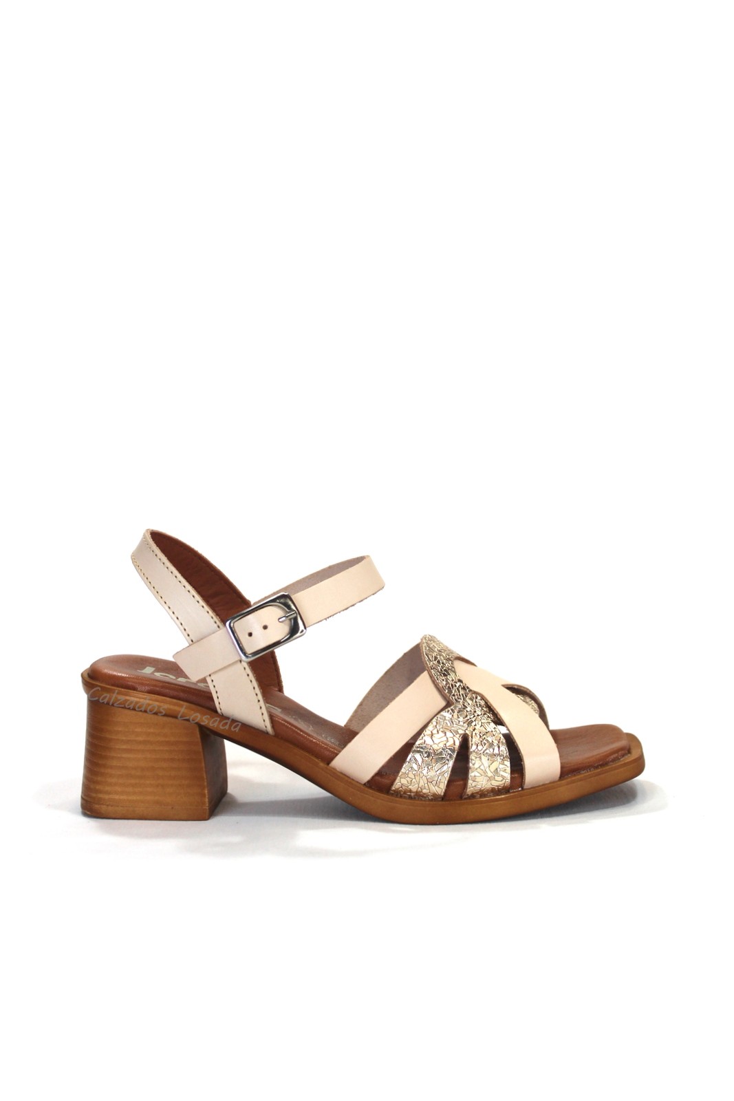 Sandalia juvenil de piel de tiras en tacón bajo.