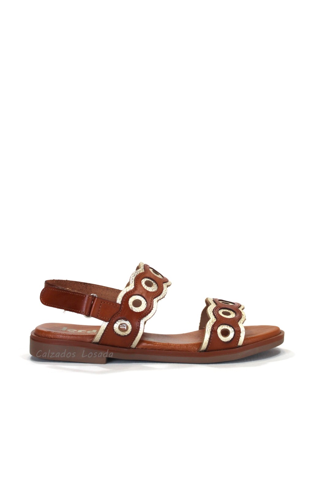 Sandalia de mujer plana con dos tiras de aros.