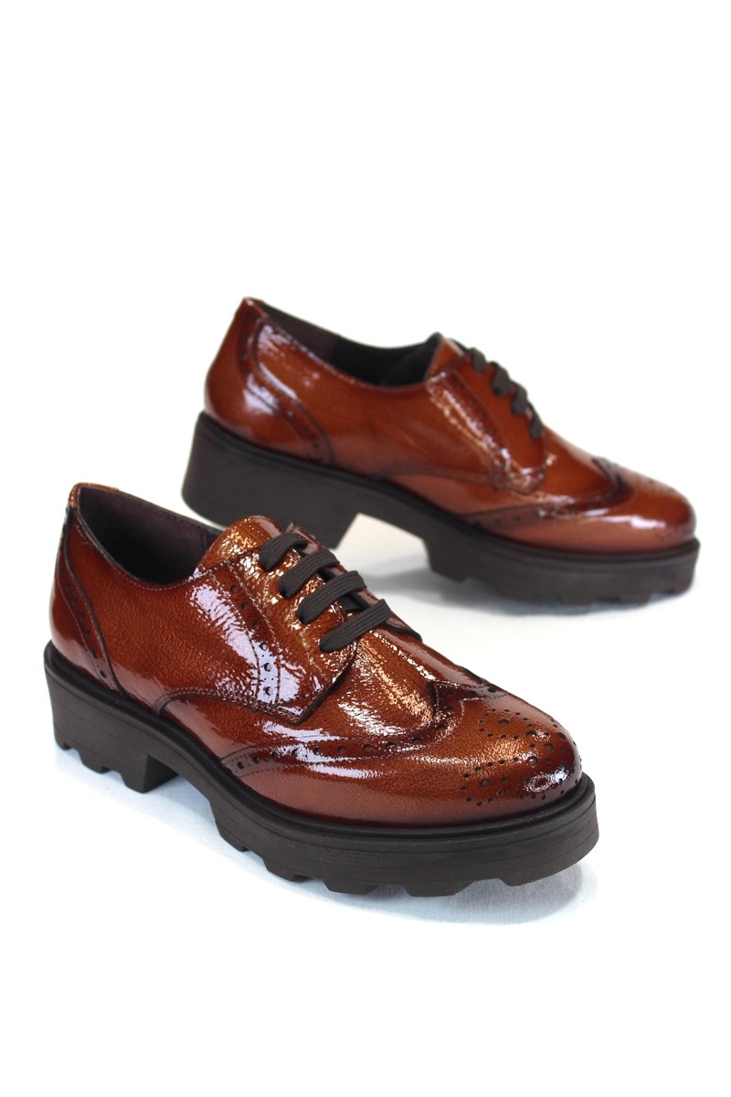 Zapato estilo oxfor , con piso alto.