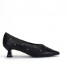 Zapato salón de ante troquelado, con adorno chapa en empeine