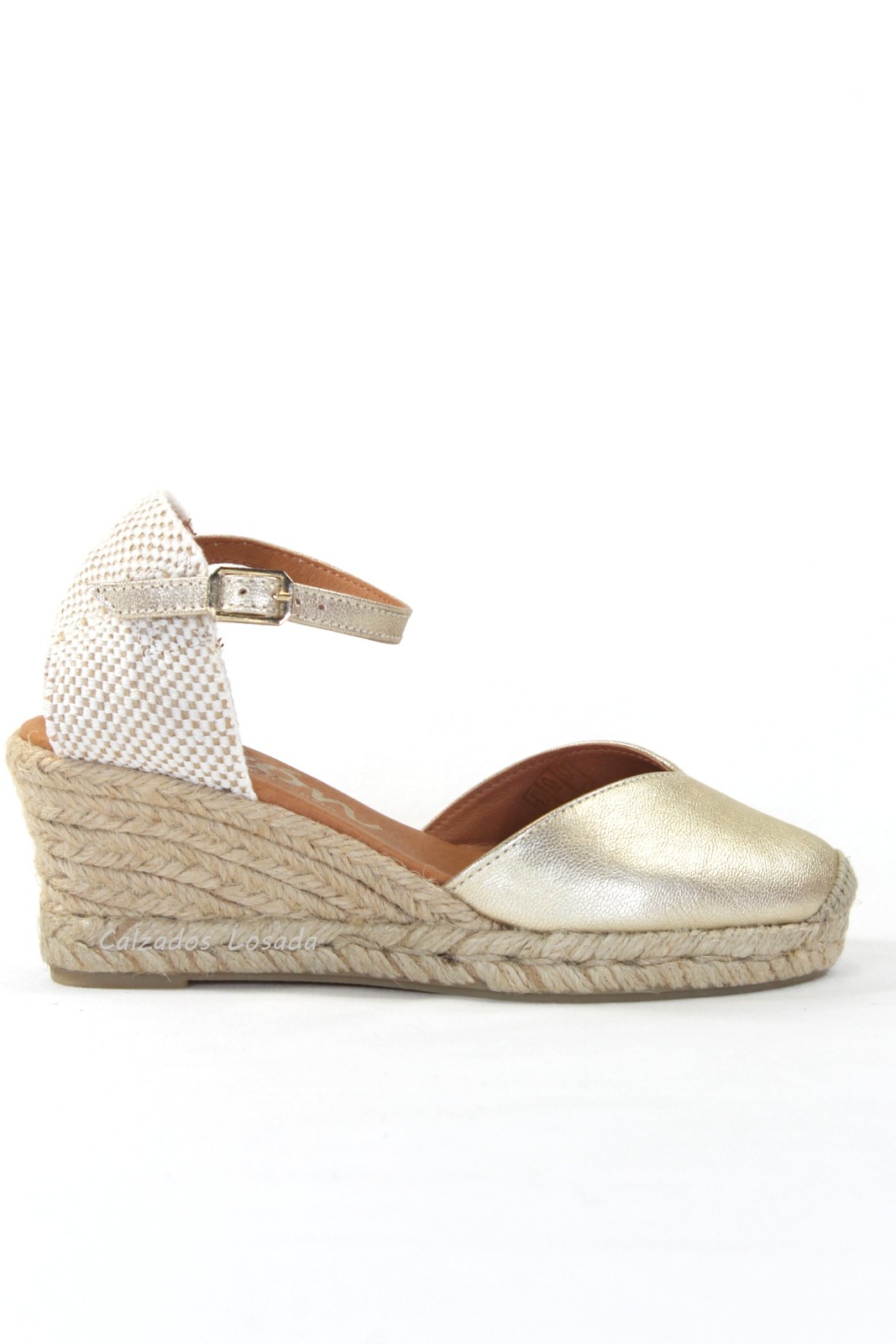 Alpargata para mujer con cuña media y puntera cerrada de piqué
