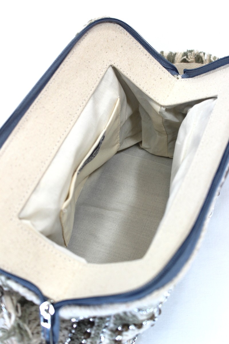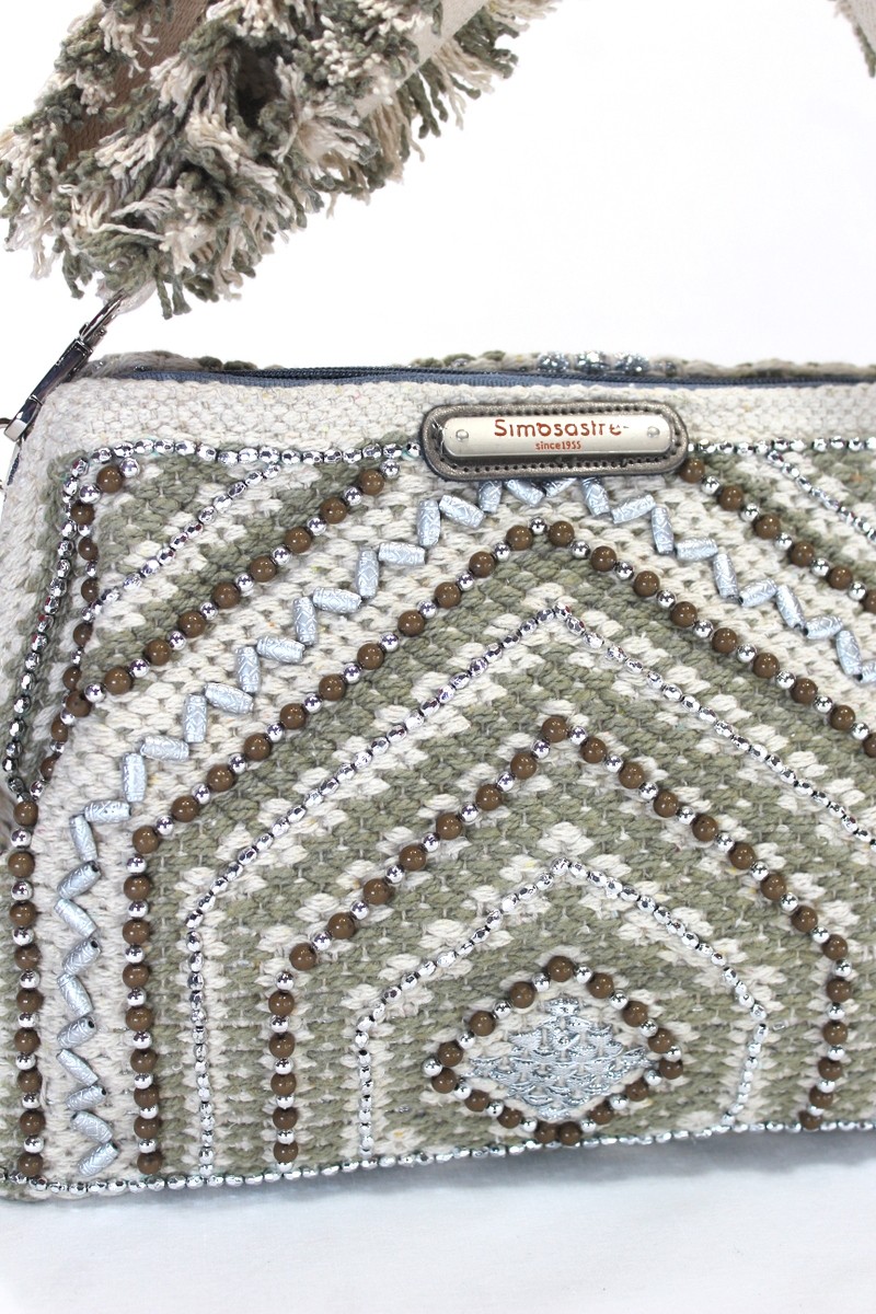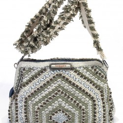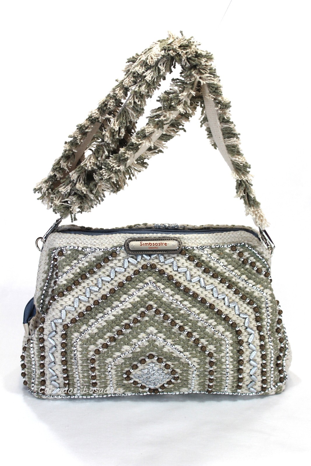 Materiales: Exerior, interior y bandolera de algodón orgánico. Abalorios de pvc.