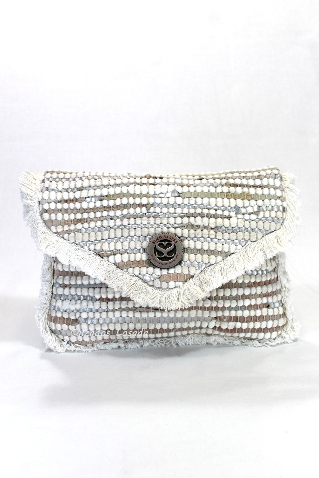 Bolso estilo sobre con solapa y bandolera.