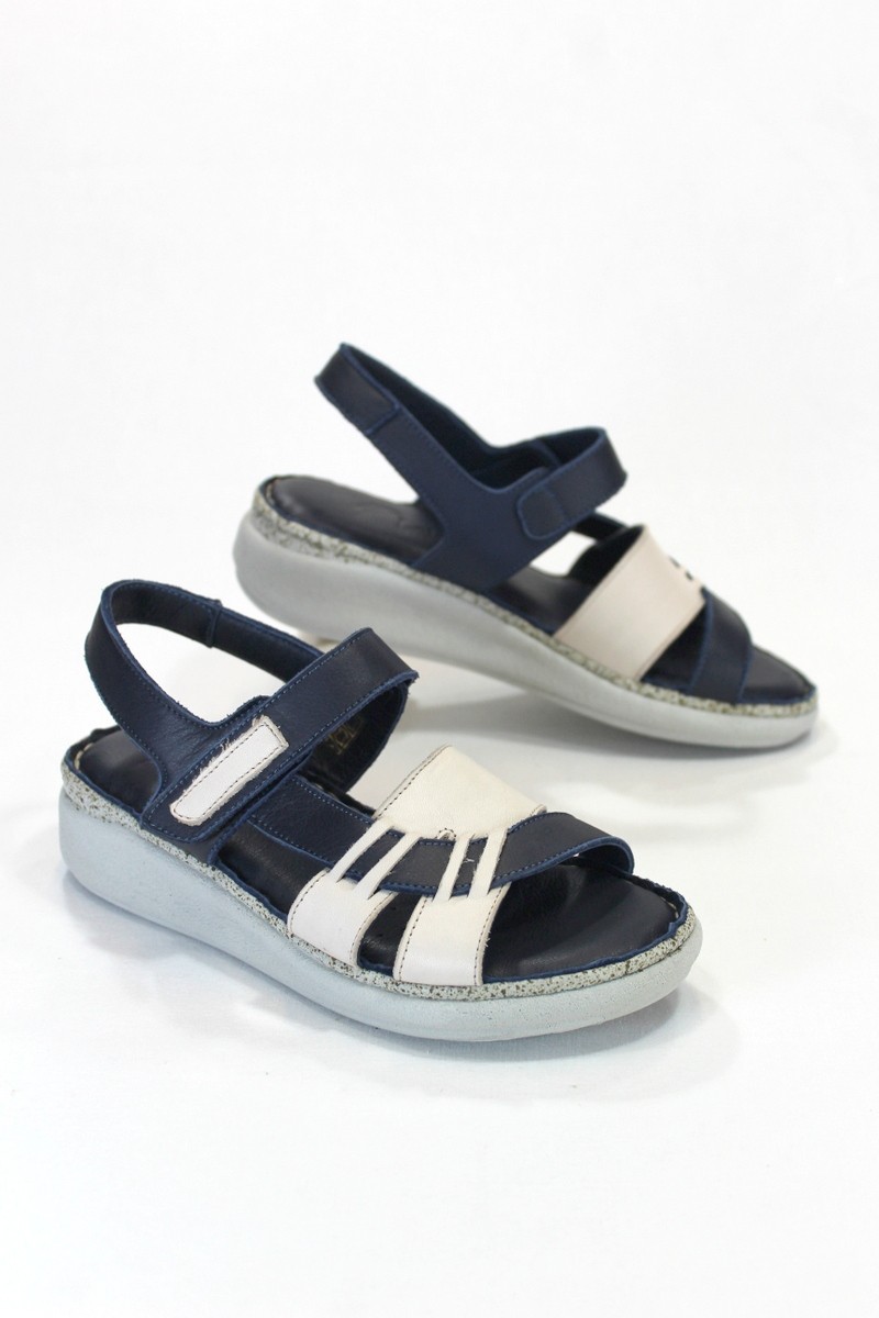 Sandalia de ancho especial de piel troquelada