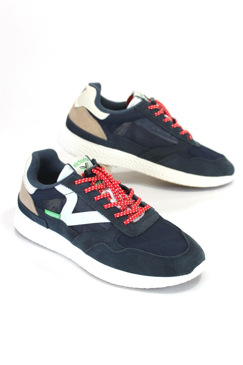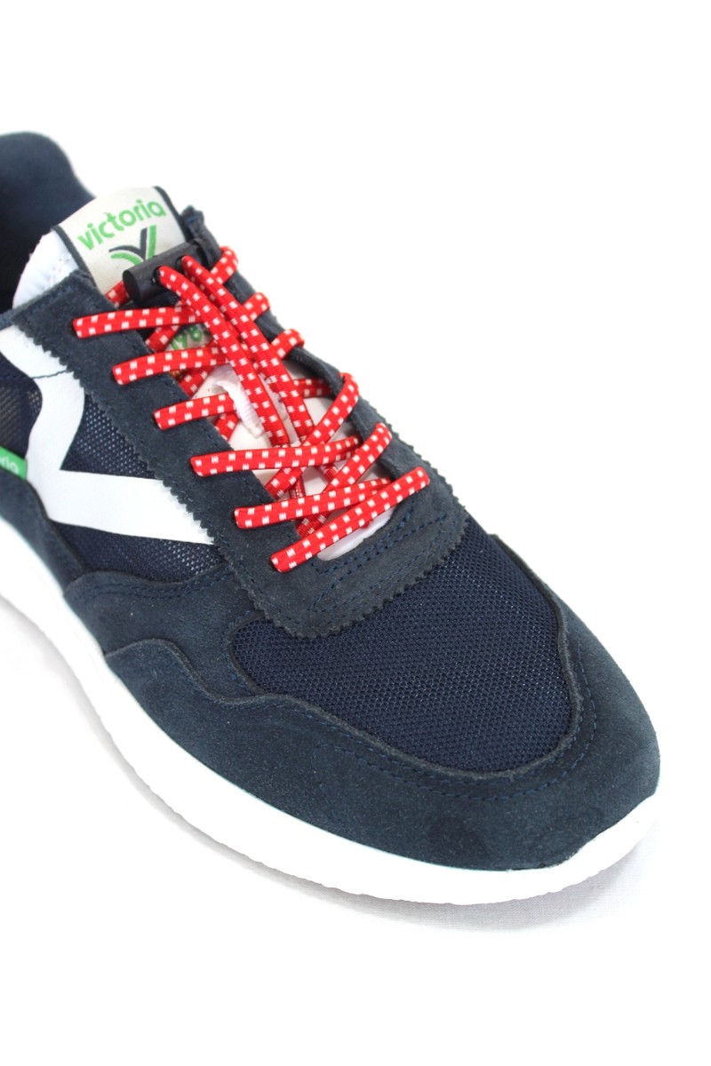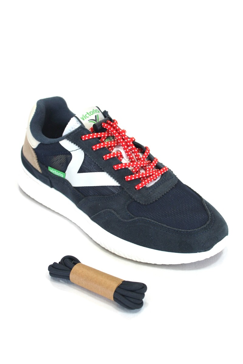 Cierre: Cordón azul marino y cordón elástico rojo-blanco.