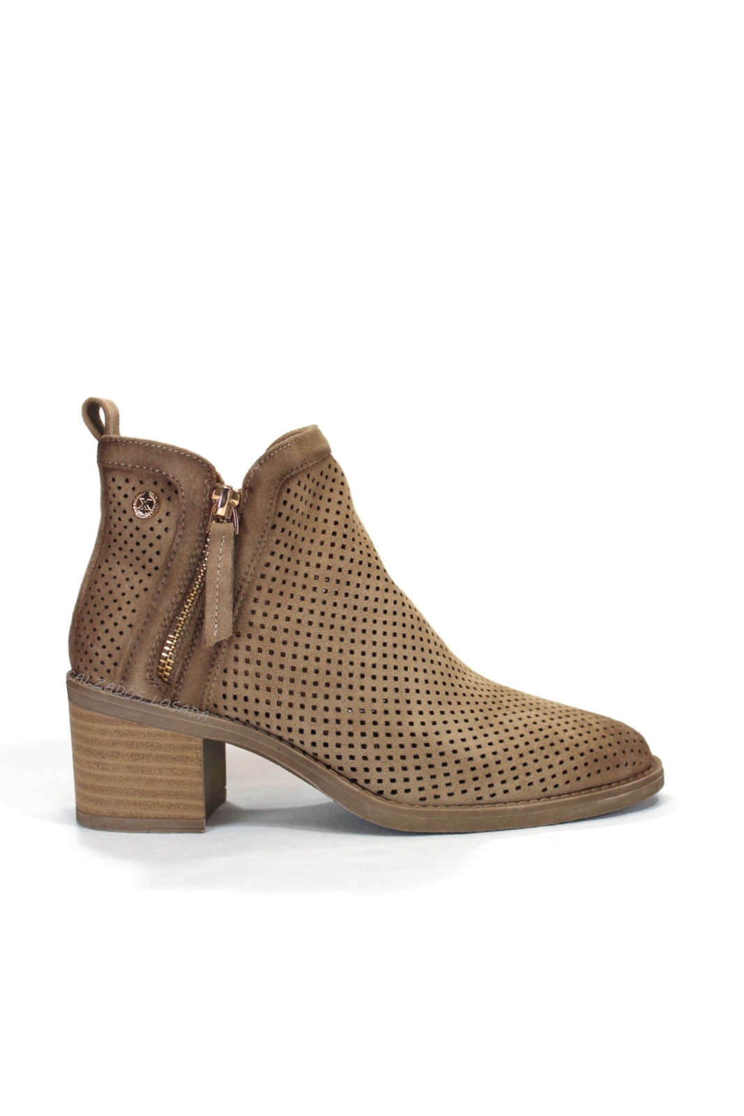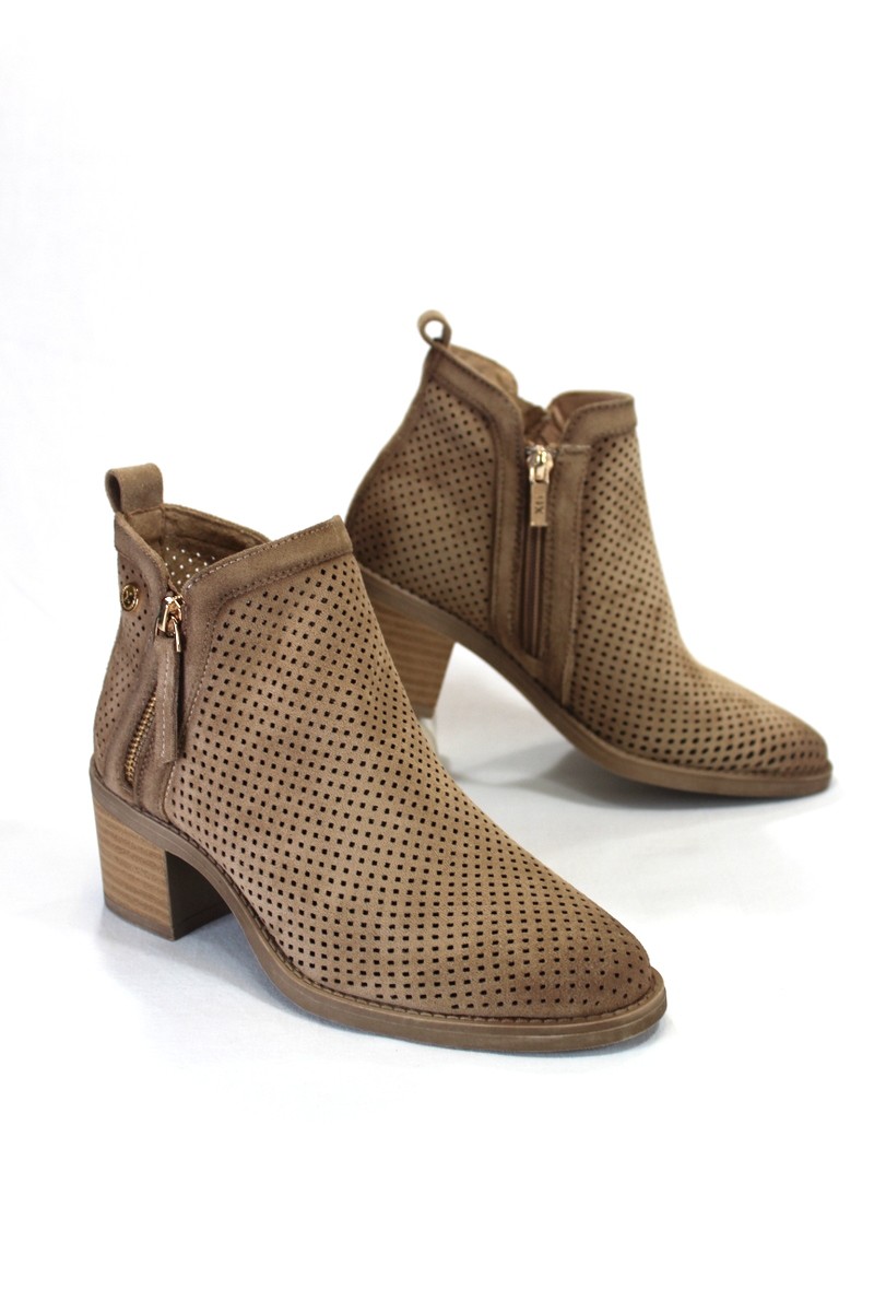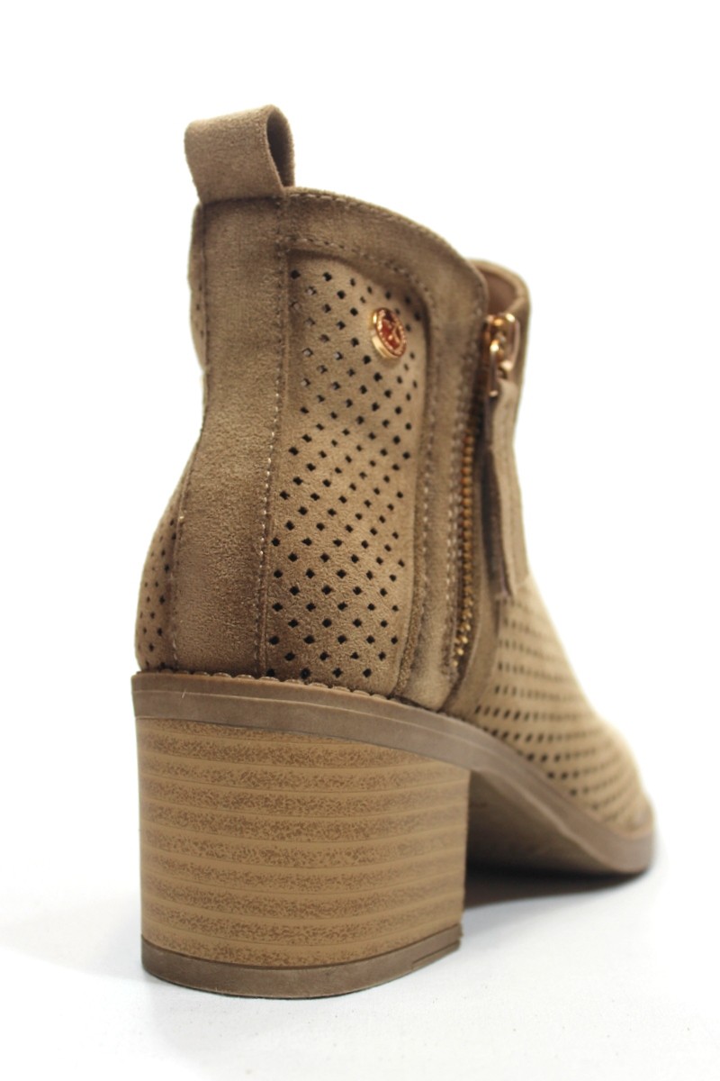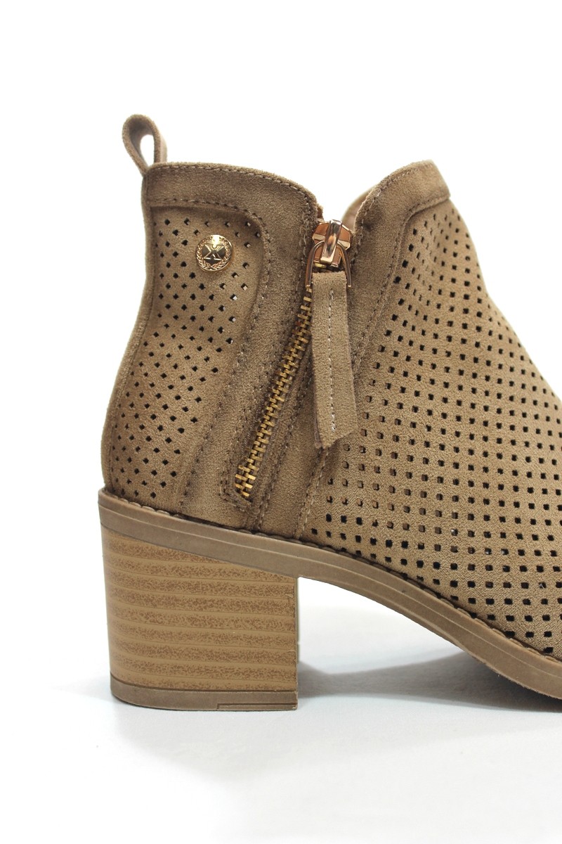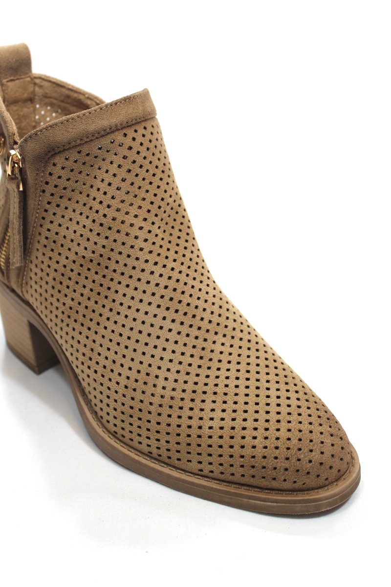 Botín de verano perforado, de antelina color camel