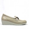 Mocasín con adorno cadena, piso de cuña , piel. Color beis. TREINTAS